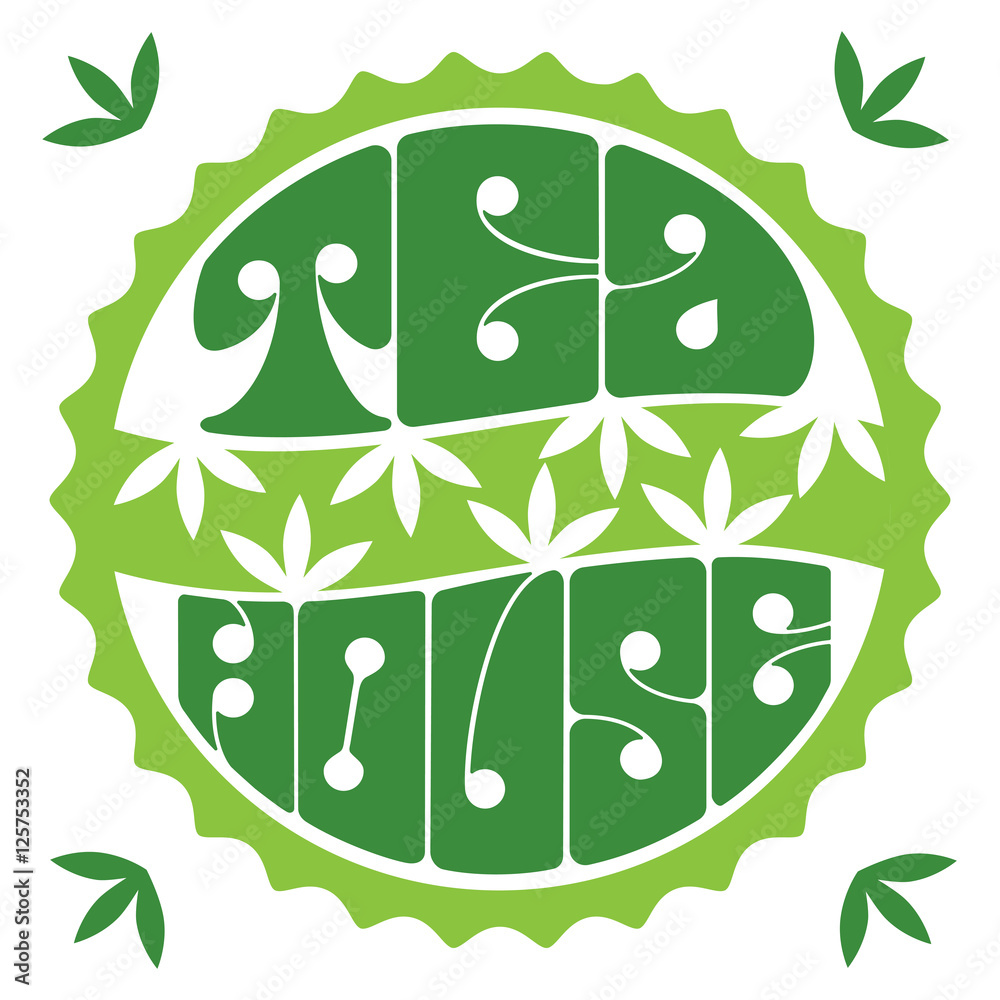 Drinks Concept Green Tea House Logo Round Shape Hand Lettering In Vintage Style Stylized Tea Leaves Design Idea For Organic Beverage Shop Decoration Background Vector Illustration Stock Vector Adobe Stock